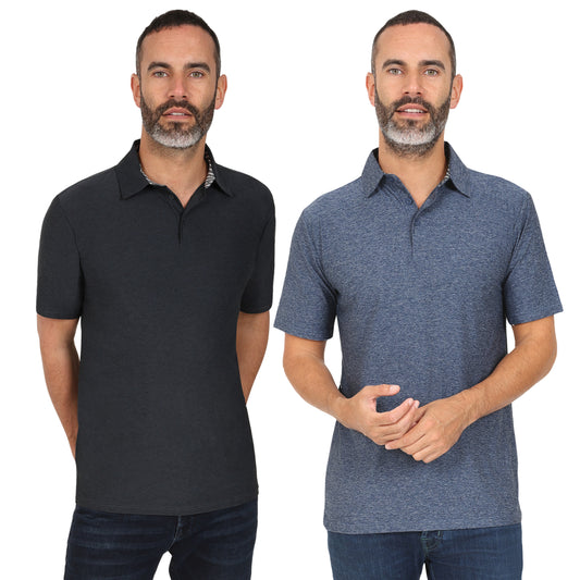 Men's Dry Fit Golf Polo - 2 Pack Black & Navy Marl