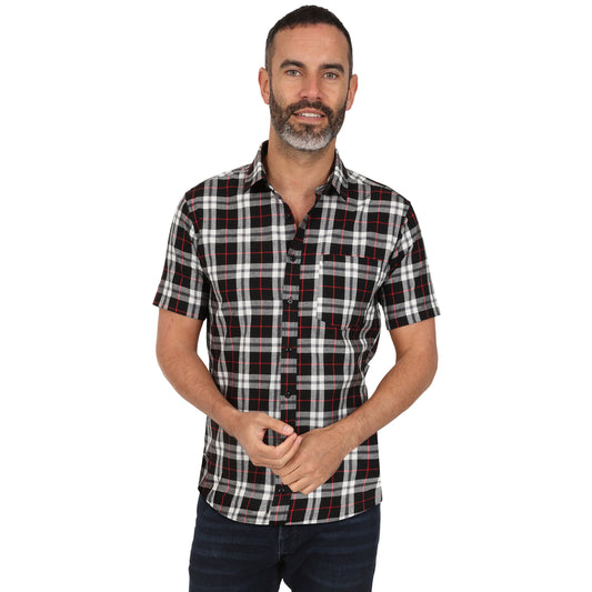 Men's Short Sleeve Checked Cotton Shirt - Black / Red