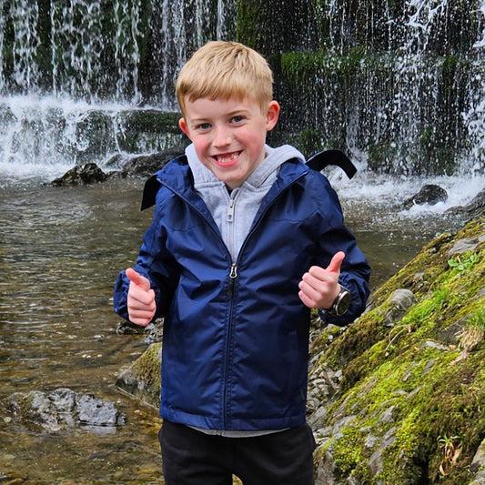 Kids Fleece Lined Waterproof Rain Jacket - Navy