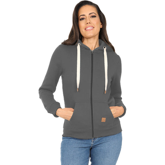 Ladies Fleece Lined Full Zip Hoodie - Charcoal