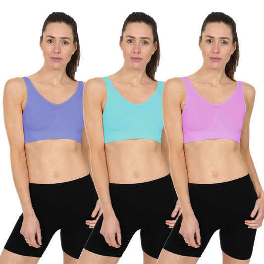 3 Pack Seamless Comfort Bra - Aqua / Pink / Lilac
