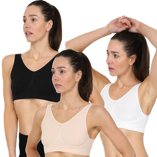 3 Pack Padded Seamless Comfort Bra - Black / White / Nude