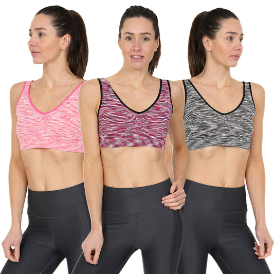3 Pack Comfort Marl Seamless Bras - Black/ Purple/ Pink
