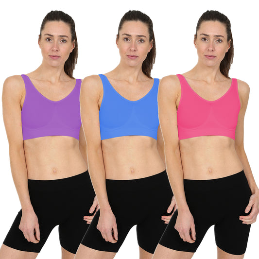 3 Pack Seamless Comfort Bra - Purple / Ruby / Blue
