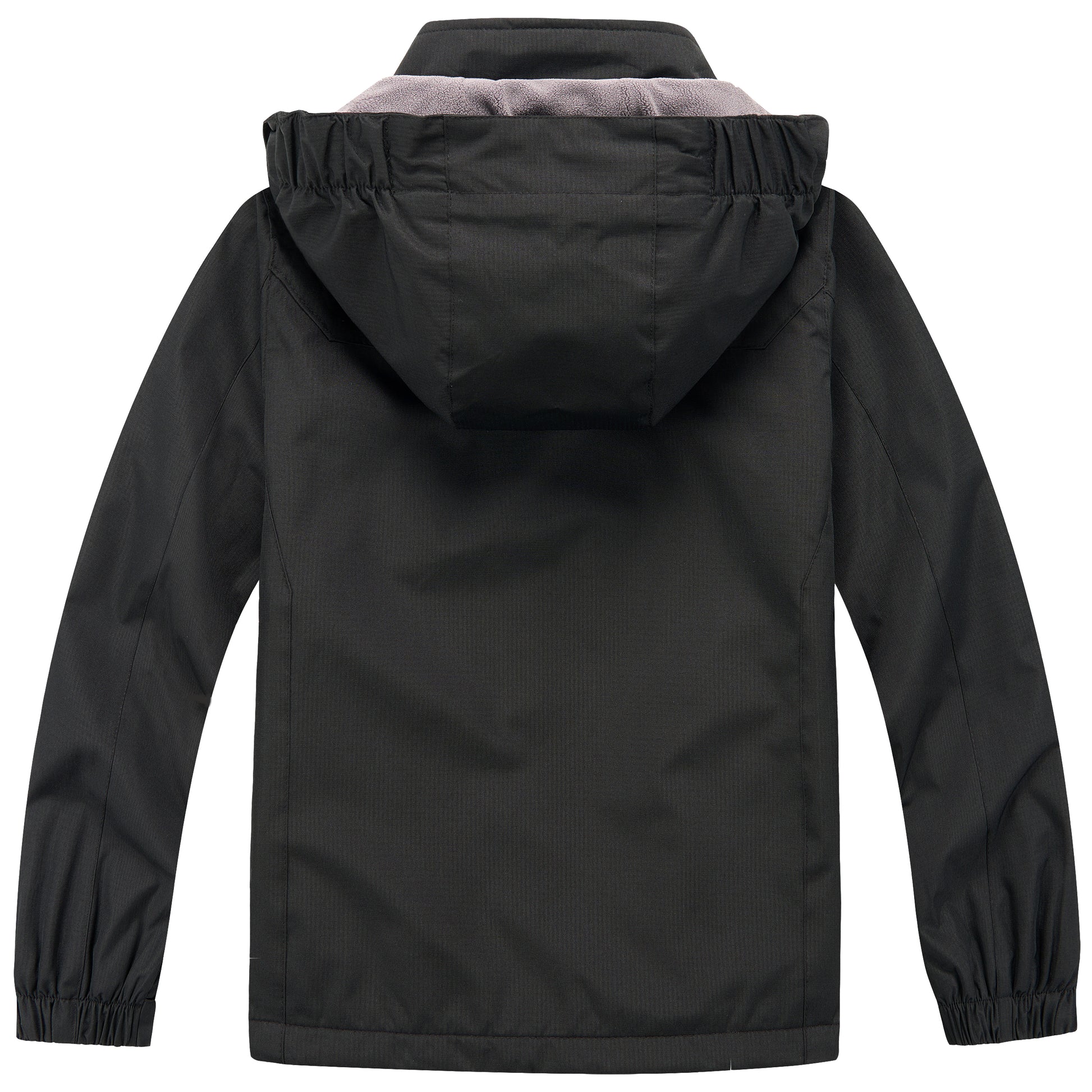 Kids Fleece Lined Waterproof Rain Jacket - Black