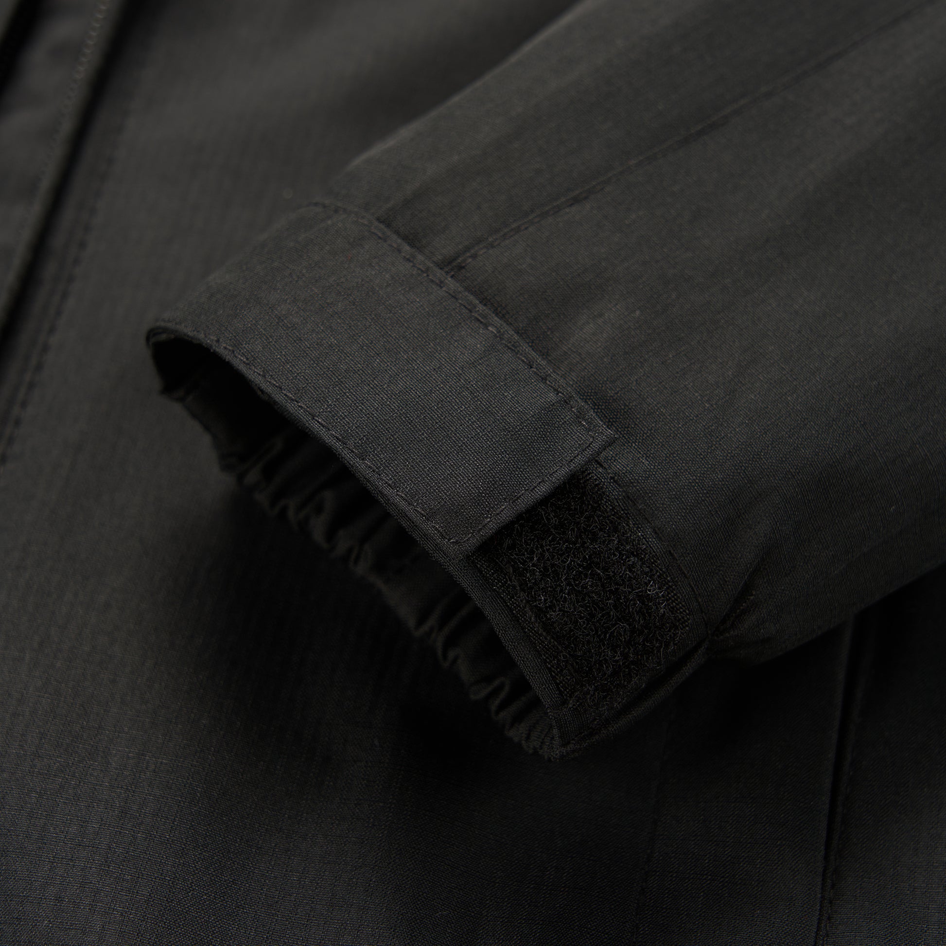 The material of this waterproof rain jacket has been laboratory tested as having a hydrostatic rating of 1,500mm. This is a measure of the water pressure a garment can withstand which indicates how water proof it is. The higher the number, the greater water pressure it can withstand.