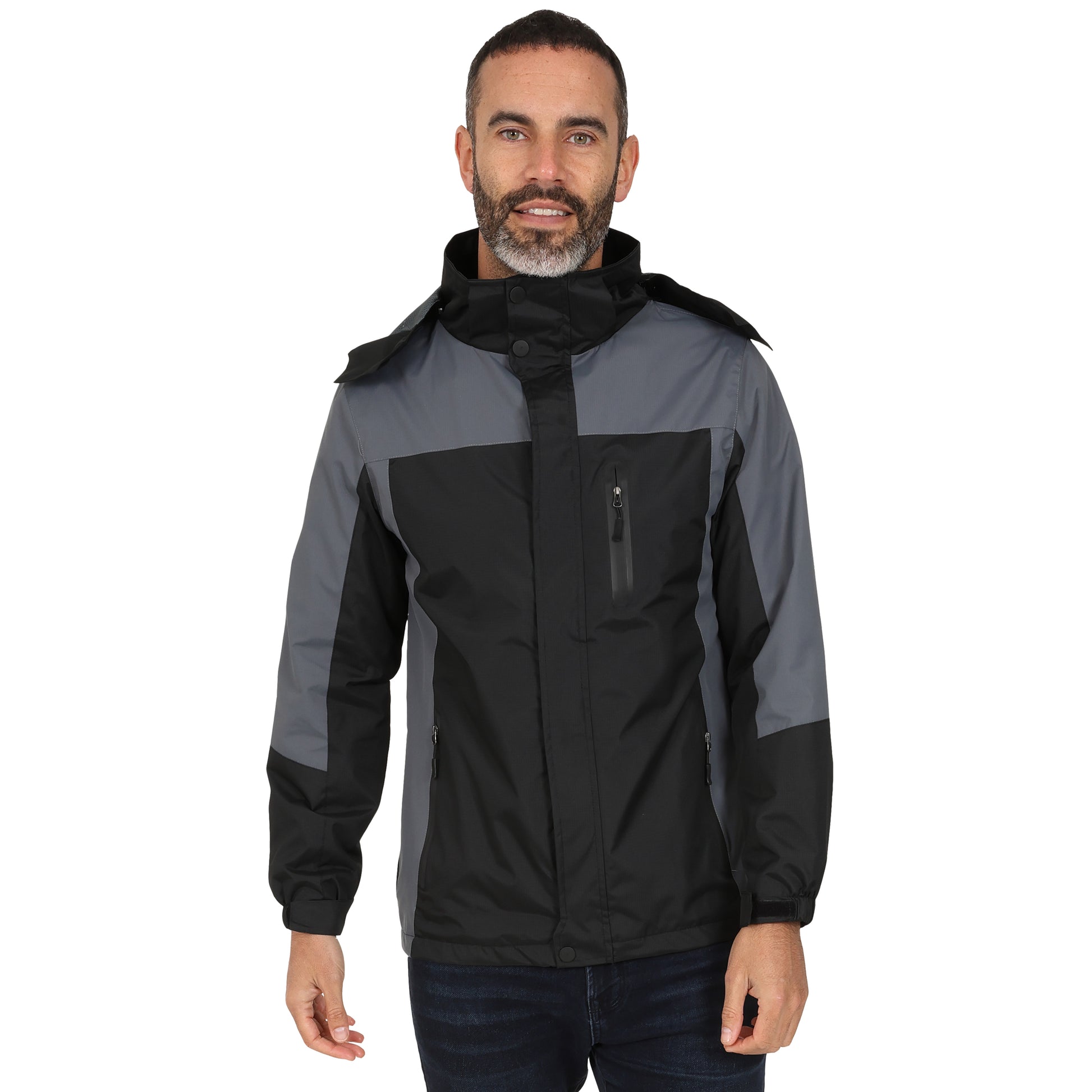 Men's Outdoor Rain Jacket - Black / Grey